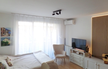 Az ingatlan egy 2005-ben épült, 8 szintes, LIFTES, igényes társasház 2. emeletén helyezkedik el. A lakás rendkívül világos. A külső nyílászáró műanyag, hőszigetelt, ELEKTROMOS redőnnyel felszerelt. A fűtés egyedi mérővel rendelkezik, radiátor hő leadóval, fürdőben törölköző szárítóval. HŰTŐ-FŰTŐ klíma is található. Az amerikai konyha gépesített, étkező pulttal rendelkezik. A lakás életterét növeli a délnyugati fekvésű 4 m2 ERKÉLY.