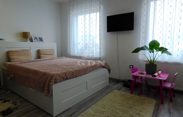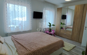 Műanyag thermo nyílászárókkal, redőnnyel, rovarhálóval, kondenzációs gáz cirkóval, klímával felszerelt.