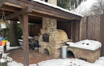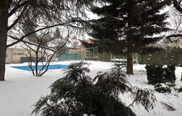 A gondozott nagy méretű kertben levő kerti búbos kemence, és a sütögető kiváló helyszíne a kikapcsolódásnak.