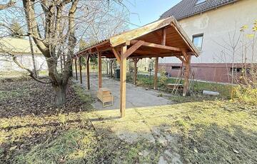 A telken belül parkolási lehetőség, valamint fedett kocsibeálló is rendelkezésre áll.