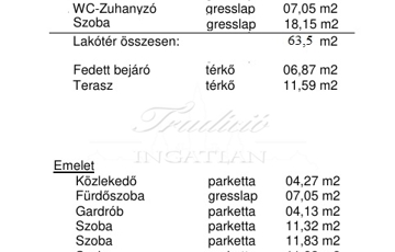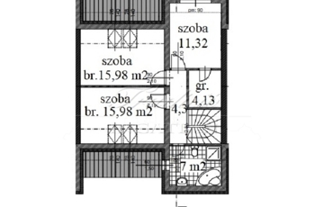 Az emelet területe összesen br. 58,73 m2, amely következő helyiségekből áll: szoba br. 15,98 m2, br. szoba 15,98 m2, szoba 11,32 m2, gardrób 4,13 m2, fürdőszoba 07,05 m2, közlekedő 4,27 m2.