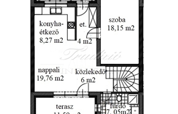 A földszint 63,5 m2, melyhez 6,87 m2-es fedett bejáró illetve 11,59 m2-es terasz is kapcsolódik. Praktikusan itt egy nagyméretű szobát is kialakítottak, ami sorházi lakásoknál ritkaságnak számít.