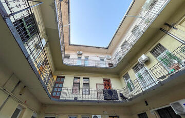 Corvin negyedben első emelet magasságában lévő, de ingatlan-nyilvántartás szerint földszinti, világos lakás eladó.