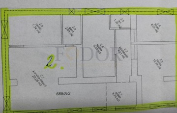 • Udvar felőli lakás: Nyélen keresztül megközelíthető, nettó 69 m² alapterületű, 3 szobás lakás, amelyhez 500 m² saját telekterület tartozik.