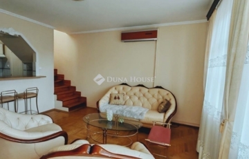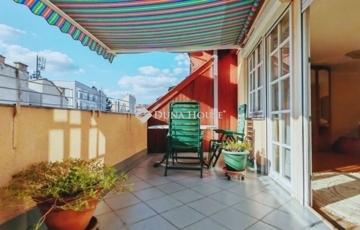 ELADÓ EGY DUPLEX, TETŐTERASZOS ÉS ERKÉLYES LAKÁS, GYÖNYÖRŰ, BELSŐ PARKKAL RENDELKEZŐ 2002-BEN ÉPÜLT TÁRSASHÁZBAN! Az ingatlan tulajdoni lapon 95 négyzetméteres. Két szintes. Az alsó szinten konyha, nappali, kamra, wc, fürdőszoba és egy kis háló található. A nappali erkélyes. A felső szinten egy tágas szoba kandallóval és egy nagy terasszal ad élményt a tulajdonosoknak. Minden nyílászáró műanyag és redőnyös! Az ingatlan szép napos és panorámás a kilátás! A fűtést és meleg vizet cirkó kazán biztosítja. Mind a kettő szint klimatizált! A lakás a teljes bútorzattal együtt eladó! A társasház egy különleges épület az utcában. Belső kertje, parkja van szökőkúttal. Lakóközösség nagyon jó! Az épületnek van saját garázsszintje, de sajnos ehhez a lakáshoz már nincs meg a garázs. Parkolási lehetőség az utcán megoldható. Kérem keressen bizalommal bárminemű kérdése van az ingatlannal kapcsolatban.