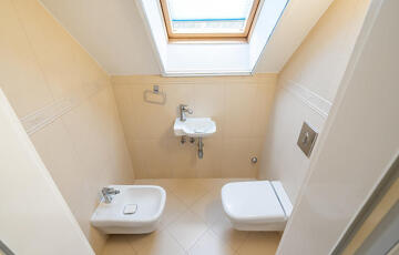 Az emeleti szinten 3 hálószoba, egy külön gardróbszoba, egy fürdőszoba, valamint egy külön WC kapott helyet. Az ingatlan összesen 7 szobával rendelkezik, így nagyobb család vagy többfunkciós használat esetén is kiváló választás.