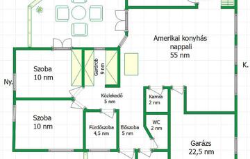 Az ingatlan átgondolt belső kialakítással rendelkezik: tágas, amerikai konyhás nappali, három hálószoba, két fürdőszoba, gardrób, mosókonyha, előszoba, kamra és külön WC.