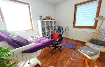 A nyílászárók fa típusú termo üvegesek, a ház klímával felszerelt, így minden évszakban komfortos otthont biztosít.