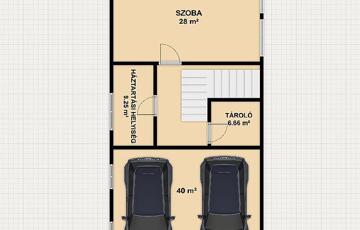 Szuterén: szoba, kamra, mosókonyha + mellékhelyiség, dupla állásos garázs.