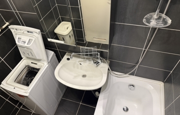 A konyha beépített bútorzattal és teljes gépesítéssel felszerelt, sütővel, gázfőzőlappal, mosogatógéppel, kombinált hűtővel és mikrohullámú sütővel. A lakás a hirdetésben szereplő bútorzattal együtt kerül értékesítésre, így az új tulajdonos akár azonnal költözhet, komolyabb ráfordítás nélkül.