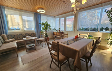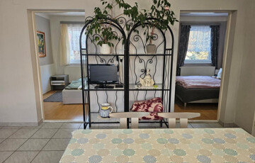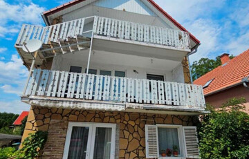 Igalban a gyógyfürdőtől 5 perc sétára kínálunk megvételre két, egymással kertkapcsolatban lévő házat. Az egyik egy szépen felújított háromszintes lakóépület, ahol mindhárom szinten ki van alakítva egy-egy önállóan megközelíthető lakrész saját konyhával és fürdővel, így külön is használhatók, kiadhatók. A földszint helyiségei: nappali étkezővel, terasszal, közlekedő, ahonnan minden nyílik, konyha, kamra, fürdő, külön WC, mosókonyha, tároló, egy hálószoba, és egy tágas előtér, ami jelenleg alkotó műhely is egyben. Alapterülete 77 m2. Az első emelet helyiségei: étkezős nappali konyhafülkével, erkéllyel, fürdő WC-vel és két háló. Ez a szint 43 m2 plusz a 11 m2-es erkély. A legfelső szint az előzőhöz hasonló elosztású, csupán kicsit kisebb, 40 m2-es, amihez 8 m2-es erkély tartozik. A teljes lakóterület tehát 160 m2. Ez az épület állandóan lakható, használható, fűtése cirkós, külső nyílászárói hőszigeteltek, műanyag keretesek. A hozzá tartozó telek 285 m2. A másik épület a kerten keresztül, de önállóan is megközelíthető, kétszintes, jó állapotú, hétvégi ház megjelölésű, egyben használható. A földszintre kellemes, tágas fedett, növényzettel körül vett teraszról lépünk be az étkezős nappaliba. Van még itt két hálószoba, konyha, fürdő, külön WC és egy kis közlekedő. Az emeletre a nappaliból vezet a lépcső, fent szintén ki van alakítva egy nappali, két háló, és itt is van fürdő, külön WC. A teljes alapterület 81 m2, plusz a terasz kb. 15 m2. Itt központi fűtés helyett a földszinten van egy kandalló, illetve elektromos radiátorok állnak rendelkezésre szükség esetén a hűvösebb időkben. Ez az épület ezért jelenleg inkább a melegebb szezonban használható, bár a külső nyílászárók itt is hőszigeteltek, műanyag keretesek. Megoldható az állandó kihasználhatóság, lakhatóság is. A telek 329 m2-es. Mindkét telek (összesen: 614 m2) szépen karbantartott, parkosított. Csendes, nyugodt utcában fekvő, bejáratott vendégkörrel rendelkező 4 szálláshely (lakótér összesen: 241 m2, teraszok, erkélyek: 50 m2) remek elhelyezkedéssel a Balaton és Kaposvár között, a neves gyógyvíz városában! Az előzőekkel összefüggő telek vásárolható még hozzá.