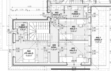 Az emeleti szint teljes egészében a pihenést szolgálja: négy hálószoba, három fürdőszoba, közlekedő és erkély biztosítja a kényelmes, jól szeparált privát életteret minden családtag számára.