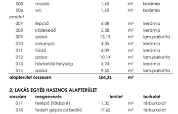 • Fedett gépkocsi-beálló: 17,62 m²