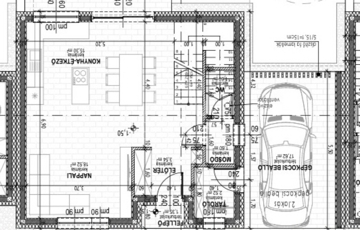ingatlanonként két gépkocsi számára biztosított, ebből egy parkolóhely a ház előtti területen kialakítható.