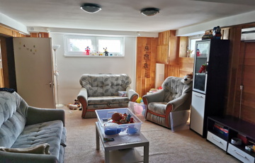 Szuterén 53 m2 - 4 db helység: 1. 34m2 padlószőnyeg borítás 2. 8,4 m2 - tároló- 3. 12 m2 (járólap borítás sarokban bárpult),