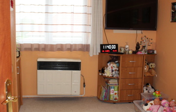konvektoros fűtés (8 db készülék), melegvíz: villanybojler, földszinten és a tetőtérben is 1-1 db klímaberendezés,