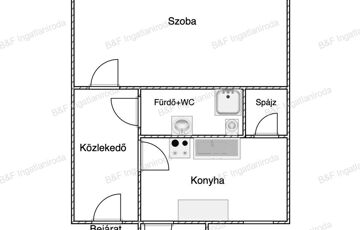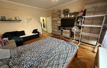 A lakásban egy tágas szoba és egy praktikus félszoba található, így a tér kihasználása rendkívül sokoldalú.