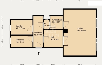 • 1 nagy szoba (35 m² – akár ketté is választható)