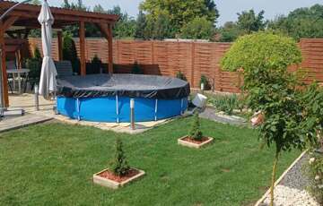 A lakótérhez egy 27 m²-es terasz kapcsolódik, valamint a kertben helyet kapott egy 24 m²-es fedett filagória, amely kiváló helyszíne lehet családi és baráti összejöveteleknek.A pihenést és feltöltődést saját szauna teszi teljessé.