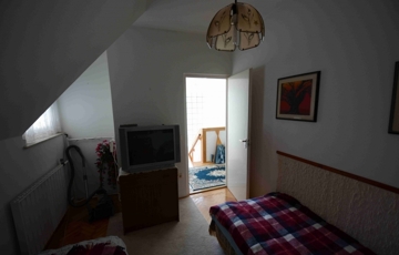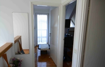 Emelet/tetőtér: 2 szoba + fél szoba, fürdő, erkély a Duna felé, melyre két szobából közvetlen kijárat van