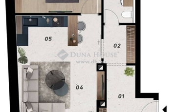 - Nagyobb élettér! A lakás alapterülete kb. nettó 55 m2 (42,14m2 + 11,25 m2-es állógaléria + 5,43 erkély).
