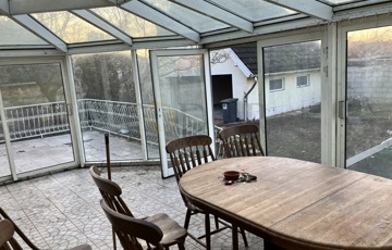 • ~30 m²-es fedett, körbeüvegezett terasz, tolóajtókkal