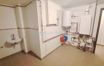 Az alagsorban ablakos és bevilágított mosókonyha található, valamint innen közelíthető meg egy közös tároló és a teremgarázs is.