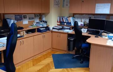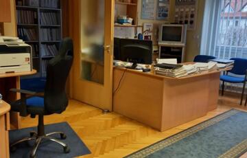 Az iroda három különálló, jól szeparált helyiségből áll, emellett külön konyha, fürdőszoba és WC is kialakításra került. Az erkély világos, kellemes munkakörnyezetet biztosít. A műanyag nyílászárók, a gázcirkó fűtés és a három darab klímaberendezés egész évben komfortos használatot tesznek lehetővé.