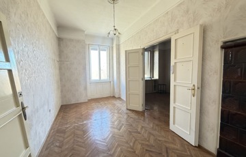 Belső-Ferencváros kiemelt részén, a Lónyay utcában, kínálunk megvételre egy 165 m²-es, nagy belmagasságú, 5 szobás, teljes felújítást igénylő nagypolgári lakást, egy századfordulón épült, liftes palotaház negyedik emeletén. Az ingatlan felett csak a padlástér található, így a lakás világos és napfényes.