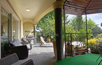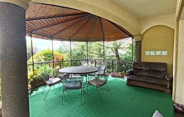 A földszintről a 74 nm nagyságú teraszra mehetünk ki, ahol kerti pavilon dísziti a környezetet.
