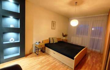 Az ingatlan két különnyíló szobával rendelkezik, műanyag nyílászárói redőnnyel felszereltek, a komfortérzetről klímaberendezés gondoskodik. A lakás értékét növeli az erkély, valamint a beépített gardrób.Felújítás során új beltéri ajtók kerültek beépítésre, továbbá egy modern, beépített, gépesített konyhabútor is a lakás része.