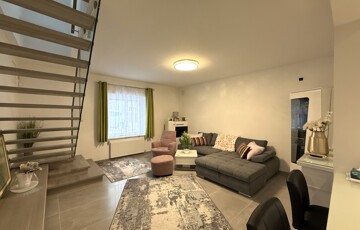 • nappali térből elegáns természetes fénnyel megvilágított lépcsővel a tetőtéri szobákhoz