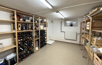 • külső fedett pincelejárattal megközelíthető ablakos 2 nagyméretű tároló helyiség (kb. 18nm és 24nm alapterületekkel), tároló és gépészeti területekkel (kazánokkal, inverterrel stb)