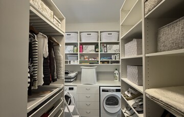 o broom (13.8 sqm) opening from the dining/wardrobe anteroom, southeast-facing (SE), with a connected windowed laundry/drying room and wardrobe leading to a private elegant bathroom: an exclusive shower area, wc, and a mirrored electric towel radiator,