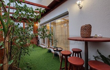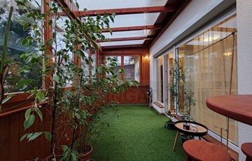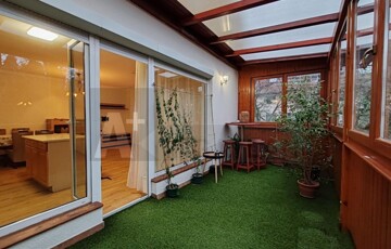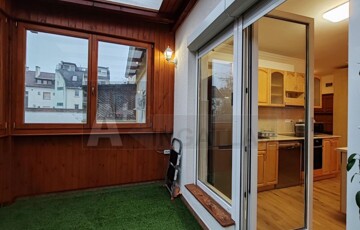 A lakás egyik igazi éke a nagyméretű terasz, amely fából készült, szigetelt nyílászárókkal rendelkezik, így egész évben jól használható.