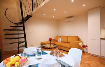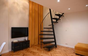 Kiadó Budapest VI.ker. Nagymező utcában egy felújított, 50 nm-es, bútorozott, gépesített, légkondicionált, egyedi loft lakás.