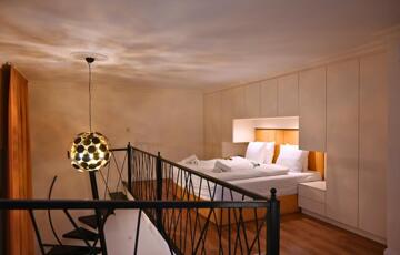 A másik alvóhely a galérián található egy king méretű dupla matraccal és fürdőszobával.