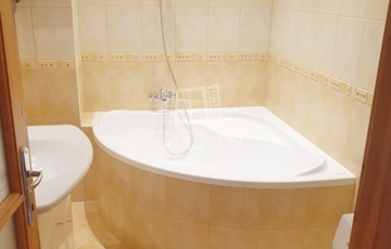 - Tágas fürdőszoba sarokkáddal, Wc külön helyiségben.