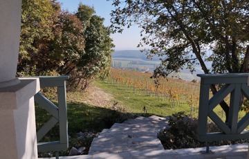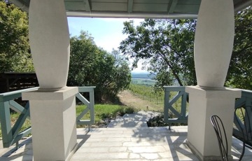 1 km-es, kocsival könnyedén megközelíthető, zsákutcába torkolló erdei úton haladva közelíthetjük meg ezt a páratlan csodát, mely garantálja, hogy a csend harmóniáját csak a helyi erdő élőlényei törik meg a későbbiekben. A panorámateraszon állva 7800 m2-en a Biokontroll által mínősített "bio" csemegeszőlő (Cabarnet), mint egy tájra borított szőnyeg tárul a szemünk elé, távolabb tekintve pedig a Balaton több ponton is látszik.