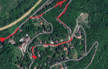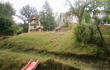 Természetben aszfaltút mellett, Visegrád Lepence völgyben, erdős, zöldövezetben, csendeskörnyezetben található. (Az egyik képen fehér ponttal jelezve az ingatlan elhelyezkedése.)