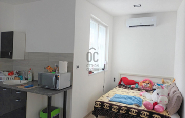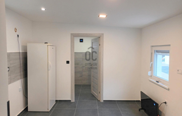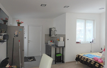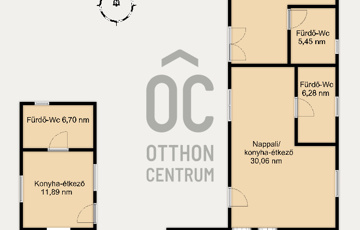 A második lakrész nettó 34 nm-es, helyiségei: szoba/konyha, fürdőszoba-Wc, mosókonyha-Wc.