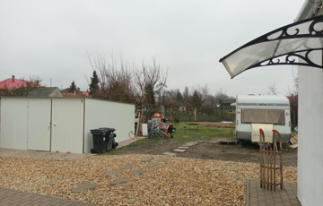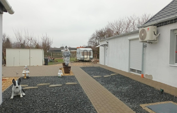 Az udvar egy része térkőburkolatot kapott, találunk még itt egy 20 nm-es garázst (villany itt is kiépítve), a kertben több, termő gyümölcsfát (meggy, szilva, őszibarack, sárgabarack, alma), illetve az öntözéshez/locsoláshoz bővízű ásott kút is fellelhető!