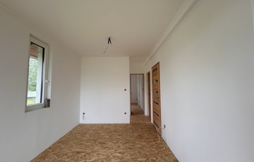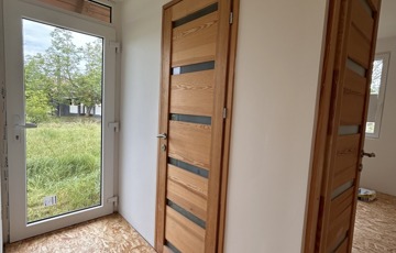 - 3 rétegű Gealan külső nyílászárókkal ellátva, belül natúr fa fenyő ajtók festés nélkül.