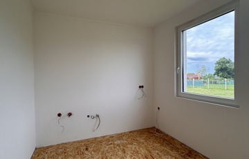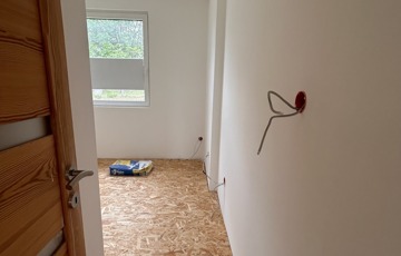 - Víz és villany kiállások a falszerkezetbe behúzva, szerelvények és kapcsolók nélkül.