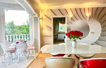 Az ingatlan lakótere igazán egyedi megjelenéssel rendelkezik, amely egy impozáns életvitelt biztosít tulajdonosa számára.