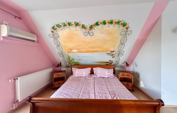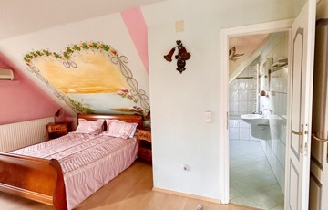 A belső kialakítás is minden igényt kielégítő elgondolások alapján lett kivitelezve, amelybe bele foglaltatik az is, hogy a tetőtéri szobákhoz saját fürdőszoba és illemhelyiség tartozik.