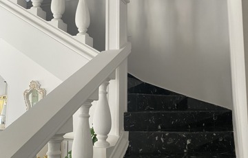 A ház tágas és világos terei tökéletes harmóniát teremtenek a modern építészeti megoldásokkal, amelyeket a minőségi anyagok és gondos kivitelezés tesznek teljessé.
