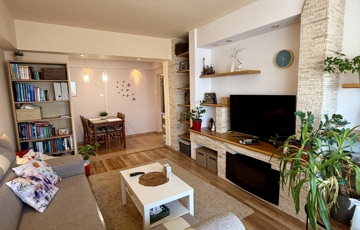 Az 53 m²-es, 2 szoba + hallos lakás elrendezése kifejezetten jó: a hall és a nappali valódi központja az ingatlannak, étkezővel, nappali funkcióval, tágas térrel.