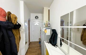 A fürdőszoba új burkolatot kapott és új akrilkáddal rendelkezik. A mosógép ebben a helyiségben kapott ki- és beállást, a WC egy külön helyiségben található.