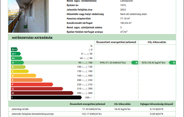 Az ingatlan HITELES ENERGETIKAI TANÚSÍTVÁNY-al rendelkezik (HET-1001-0711), amely alapján az ingatlan energetikai besorolása: A
